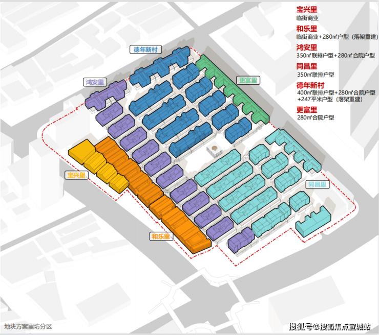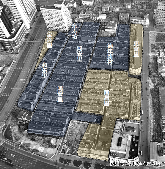 弘安里这块地原由8个街坊组成,其中东寿坊和永安里因后期加建改建较大,体量也很小,为了园区整体考虑,不再保留,延续了剩余6个组团:德年里、和乐里、宝兴里、更富里和鸿安里。