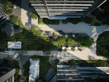 这些高大的乔木,在交付前半年便以全冠移植的方式,在此落地,与精心设计的灵动水景相映成趣。