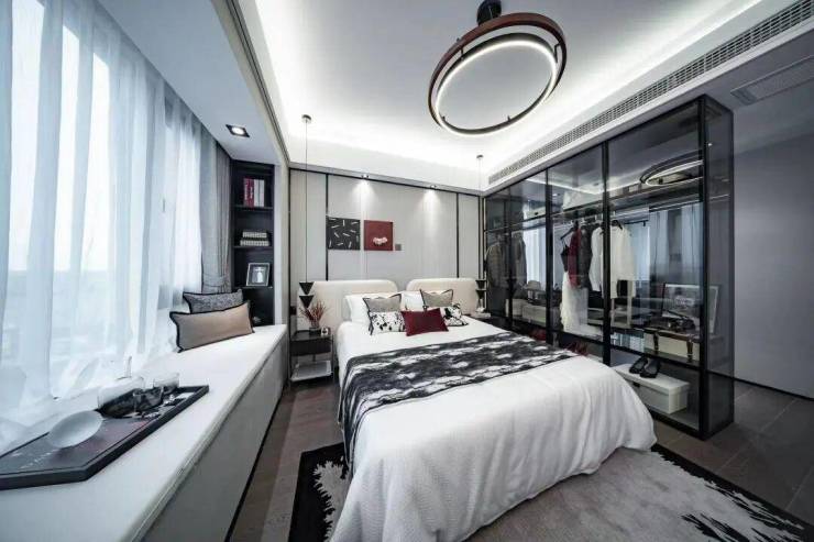 功能上,更是容纳了卧室、独立卫浴、衣帽间,以及开放式书房,做到了「四合一主卧」。