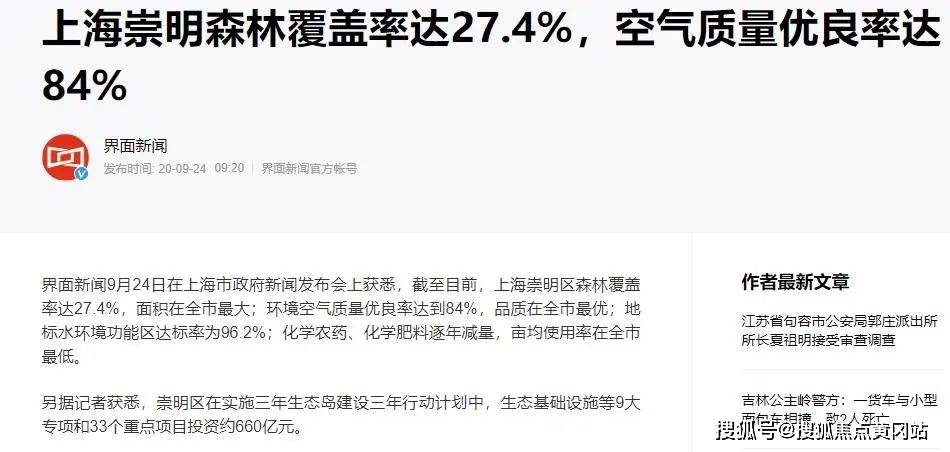 最后再介绍一下项目的周边。崇明作为“高级的生态岛”,坐拥27.4%的森林覆盖率、84%的空气质量优良率、东平国家森林公园、东滩湿地公园、花博园等众多的自然资源,想必大家都已经很熟悉了。