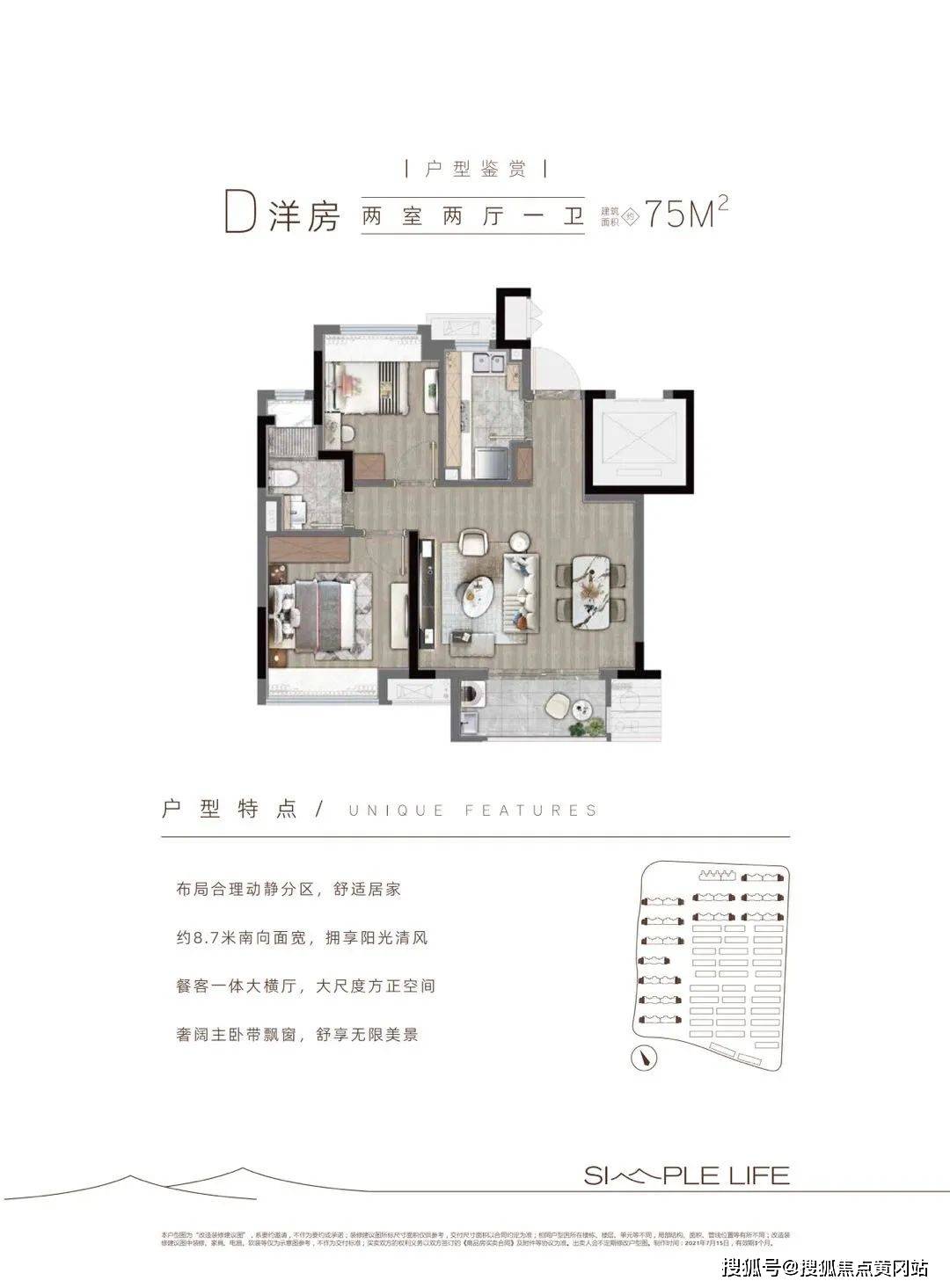 除了靠近轨交,项目第二个令人心动的优势,就是它的价格了!项目是新房,此次主推的是建面75平方2房2厅1卫户型,总价200万-230万,均价28640元/平方!