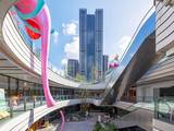整个园区以围合式布局展开,七幢建筑借鉴中国古典园林的精髓,最大楼间距达到了63米,使得每栋楼都能享受到270°的开阔视野,仿佛是一座座隐匿于花园中的岛屿。为了与景观相呼应,园区立面采用“水晶天幕”设计,线条纤细,使建筑宛如天空中垂下的纯净湖面。
