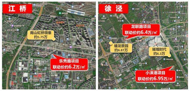 徐泾小涞港项目,房地联动价约6.95万/㎡,该地块同板块同类型产品为约6.87万/㎡的蟠龙景园,与其相较上调约800元/㎡。