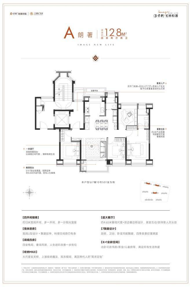 ◎真四开间朝南:据统计,2024年至今的上海新房市场中,建面在125-130㎡产品只有约9%做到了真四开间朝南,而地铁口的4房产品更是少之又少(数据来源于网络)。保利·虹桥和著建面约128㎡户型真四开间朝南,南向总面宽超13米,对比新房市场同面积段常见的10米面宽,采光和视野媲美千万级豪宅。