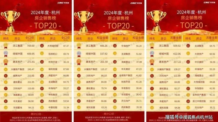 荣登2024年1-10月杭州房地产全口径榜、流量榜𝑻𝑶𝑷𝟑