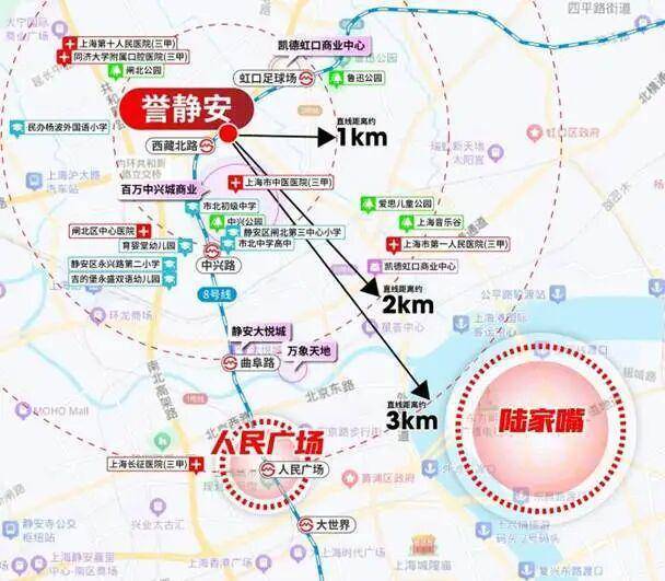 项目坐拥静安内环顶级资源配套:步行约300米至8号线西藏北路站(3站直达人民广场);1公里范围内覆盖华山医院北院、静安区中心医院等三甲医疗资源;商业方面毗邻万象天地、静安大悦城等高端商业体。