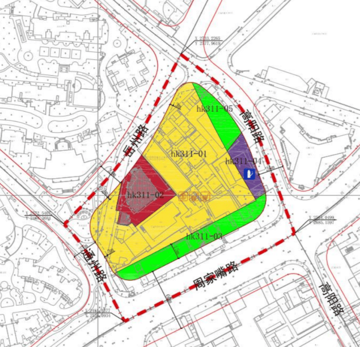 其中,hk311-01地块(135街坊——即碧云北外滩尊邸)四至范围,东至hk311-05和hk311-04地块,南至hk311-03地块,西至通州路,北至岳州路和hk311-02地块,