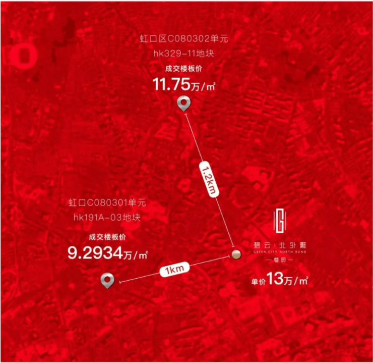 此前,2024年上海第7次土拍,虹口区C080301单元hk191A-03地块,由华润置地以总价51.36亿元竞得,成交楼面价92934元/㎡,预计房价15-16万/㎡、