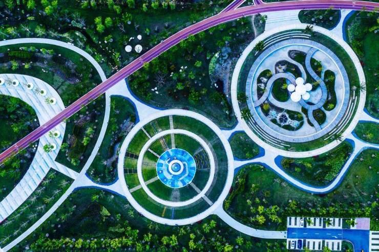 Looking out of the window of Youngor Star Sea Cloud Realm, one can overlook the Starry Sky Realm Sponge Park. The park is in a curved shape, and its functions and designs are all centered around "astronomical" elements, forming four different functional areas: the leisure stargazing area, the wetland science popularization area, the dynamic planet area, and the astronomical experience area. The sponge system and the garden landscape are organically combined, integrating the Starry Sky Realm into the sponge scenery.