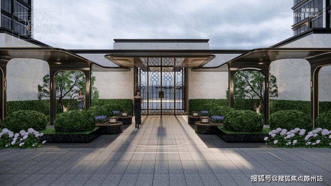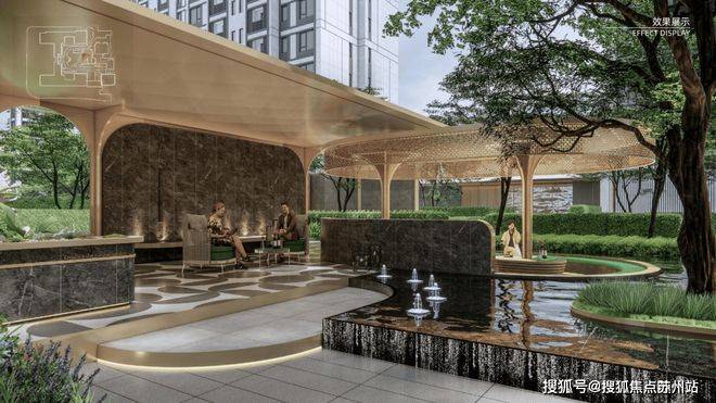 比如“原生围合社区”、风雨连廊,从高奢酒店中获得灵感的酒店式落客区、度假风园林,以及千万级住宅中都不多见的下沉式会所!