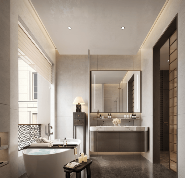 国际大牌奢装:耶鲁门锁、大金空调及地暖两联供设备、中央新风空调、Smeg厨房四件套(吸油烟机、煤气灶、洗碗机、蒸烤一体机)+冰箱、怡口净水器、高仪卫浴、杜拉维特智能马桶等,为别墅生活带来更高品质的奢享体验。(以上提及品牌型号,可能因设计优化调整或采用同等品牌,具体以实际交付为准)