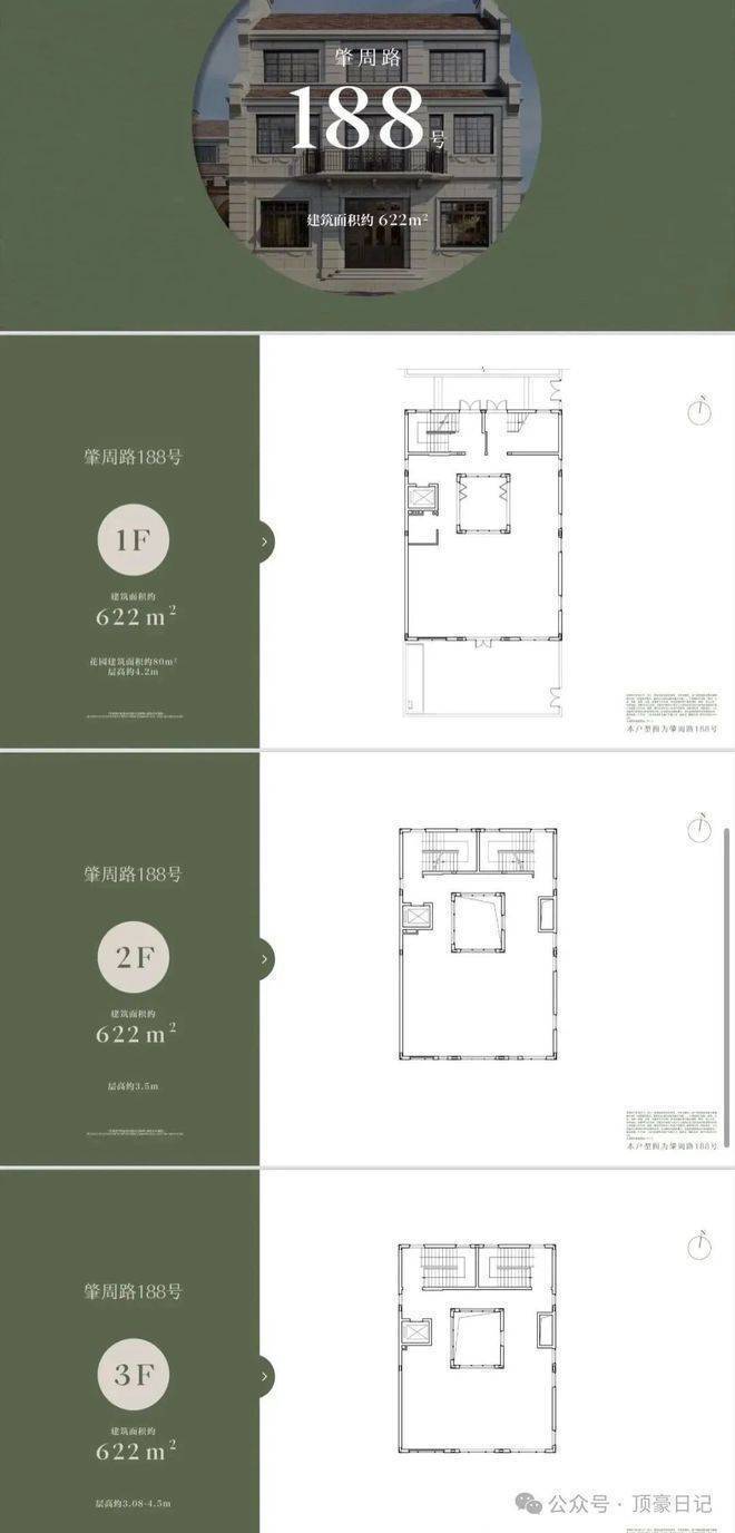 别墅面积391-622平方米,地上三层搭配地下空间,适合高端会所或重餐饮。