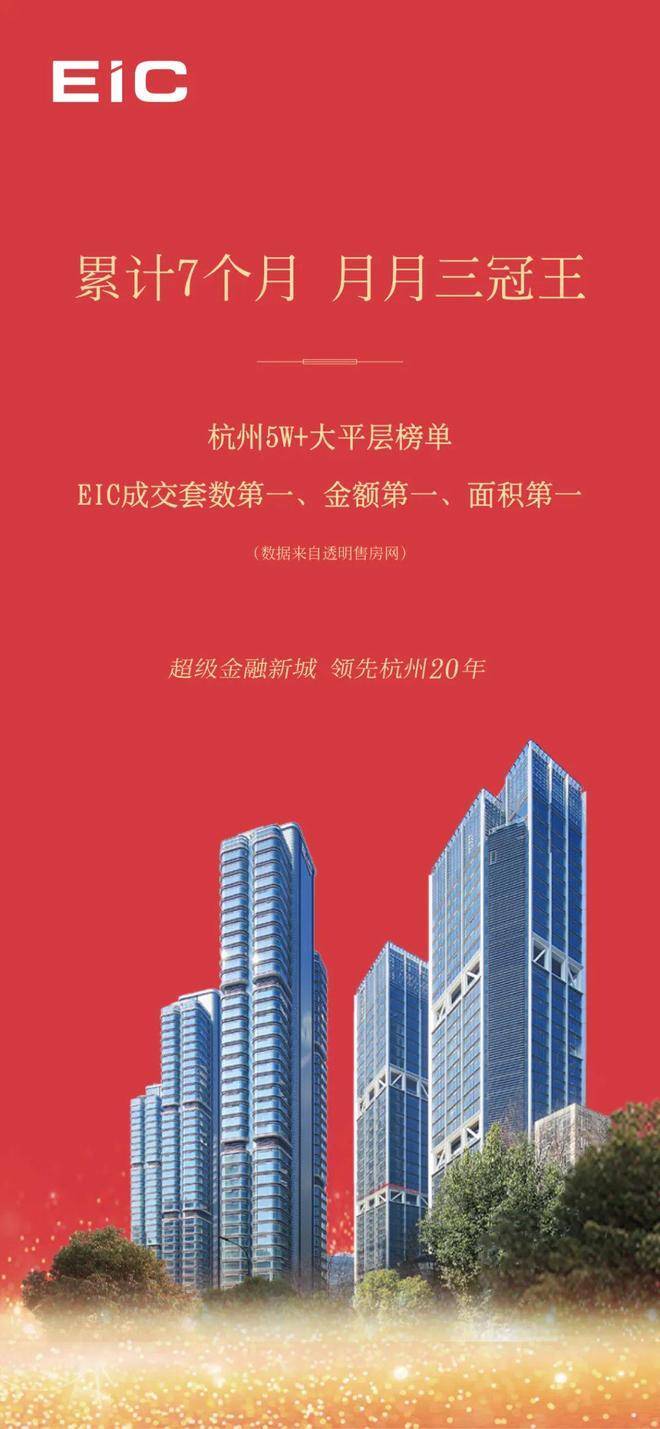 面对中美关税第三轮谈判出炉、全球经济不明朗形势下,EIC继续以大幅度优势,登顶1-7月杭州5W+大平层金额、面积、套数三冠王。