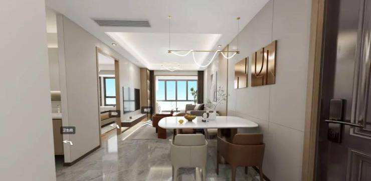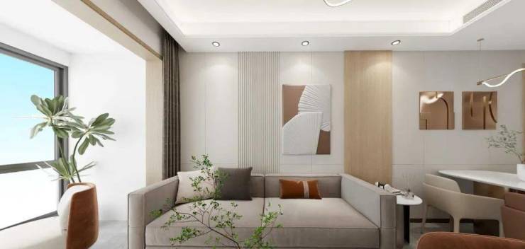 客厅做了灵动处理,可以做为大横厅使用,彰显气派,配上南向的宽景大阳台,显得十分明亮。