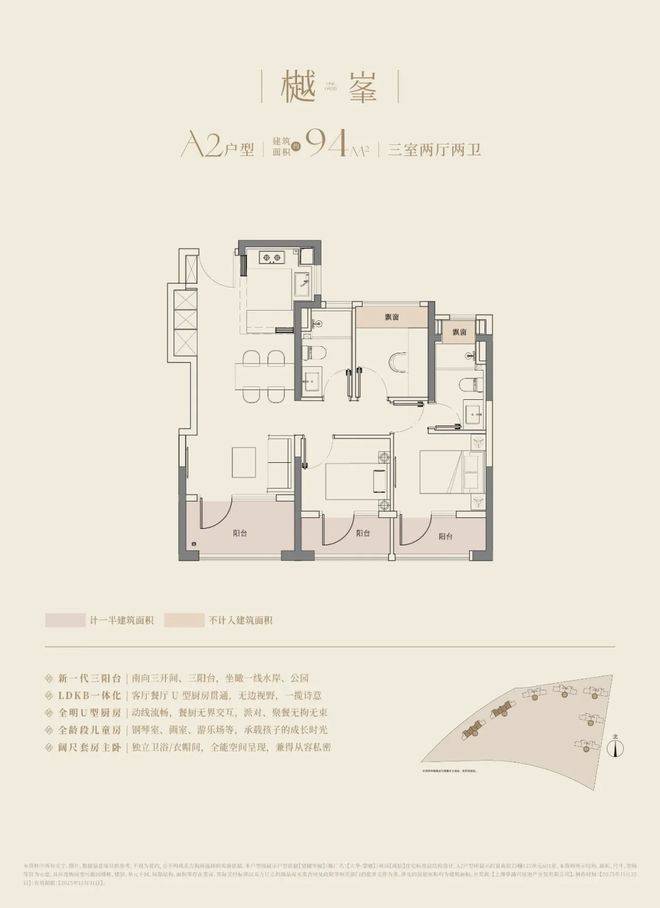 建筑面积约94-126㎡的全能尺度,全户型三开间三阳台配置,可以满足所有阶段家庭的空间需求。