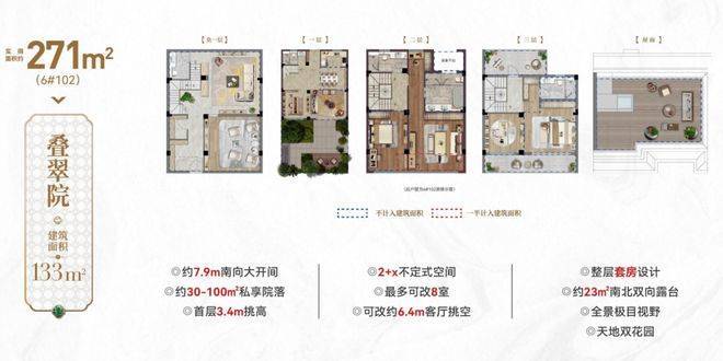 项目产品赠送面积超级大,入户双花园、负一层、露台…全赠送,使实得面积突破300㎡,而总价仍控制在280万以内——