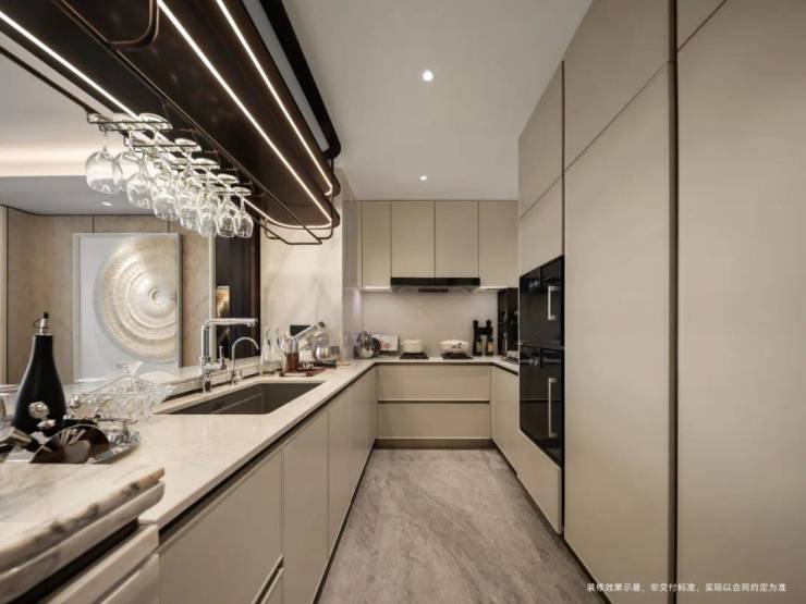 客厅背景墙的“烟雨江南”天然大理石,不同于传统平面背景墙,通过弧度及立体的造型处理,并镶嵌不锈钢材质,对于金茂而言,比奢石昂贵的,是让奢石真正与空间气场融为一体。