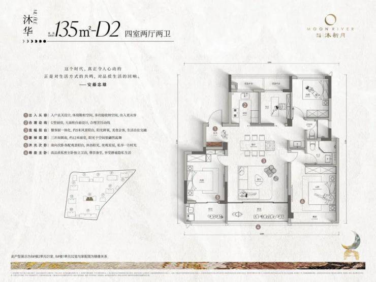 沐新月作为M55系第三个作品,以林汐美学为源点,承袭大水院美学、夜行者美学、疏密相间的漂浮美学等经典元素,更是因地制宜,打造无界自然的水岸森居,环绕建筑的都会森林、环绕园林的美学潮汐、环绕水景的漂浮岛屿的三重景观美学,理想生活如新月变幻,迭新不息。
