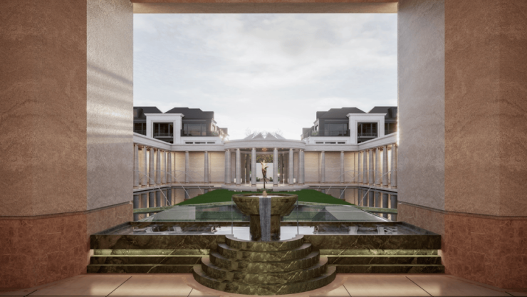 NO.1 煊赫门庭(南门) 以凡尔赛宫三泉林为蓝本,约36米奢制格局,勾勒归家的第一道仪仗。