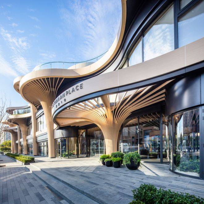 南北外立面采用了铝板、石材和大面积玻璃的组合,实现了社区的“无死角颜值”。