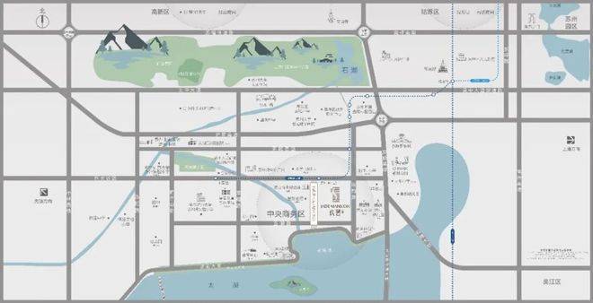 目前苏州整体城市规划了一核四城”的发展战略方向,吴中太湖新城位于苏州南部,是一核四城的重点发展片区之一。