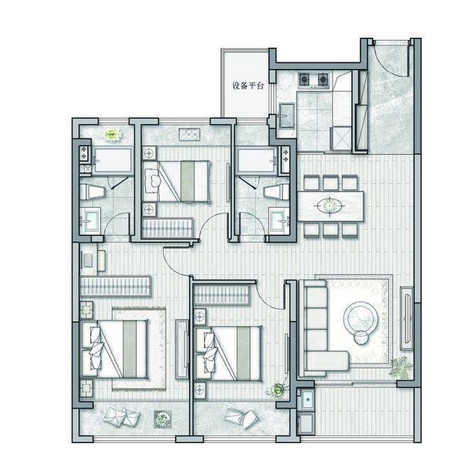 2. 三房两厅两卫,动静分区,互不干扰