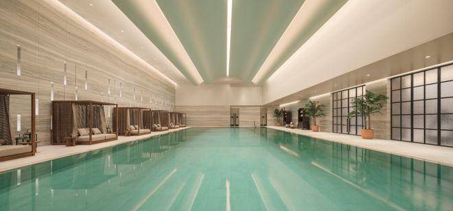 会所泳池超高挑高空间搭配曲面吊顶,营造媲美国际高端度假酒店的沉浸感,会客区与健身房同样将海派美学元素融入空间肌理,处处彰显低调奢华质感。