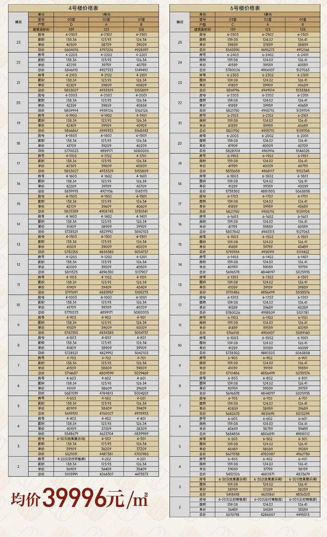 ⭐️6号楼:123-128-139㎡C。