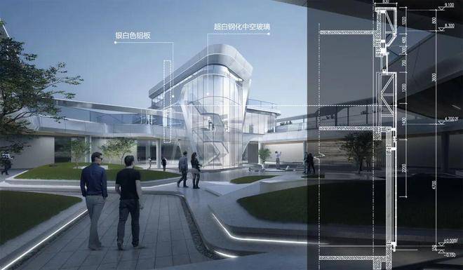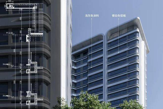北立面设计延续南立面的飘逸风格,通过舒展流畅的线条语言,在保持整体协调性的同时,进一步强化建筑立面的视觉辨识度。