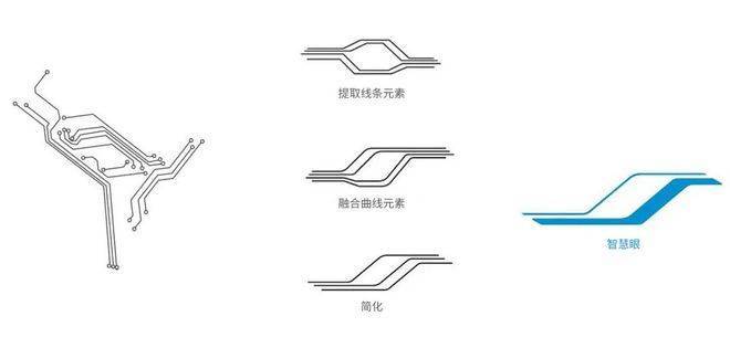 从精密电路板的几何折线中提炼设计元素,与绍兴水墨山水的柔美弧线、高铁的流线型美学三重交融,以曲线设计语言实现“以简驭繁”的意境转译。最终凝练的“智慧眼”符号,通过美的品牌标志性的天蓝色赋能,成为贯穿建筑、景观、室内的超级视觉IP。