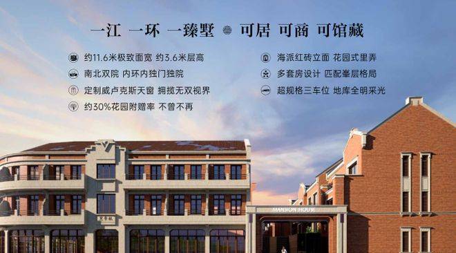 内环内滨江低密别墅,外立面复刻石库门肌理,融合海派文化。