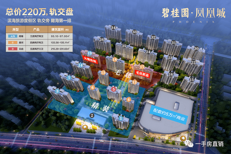 4、32分钟一半价格:和上海南站价格梯度显著,未来潜力巨大。项目主推建筑面积约为95㎡舒适三房,133㎡改善四房,230㎡海上平墅,打造滨海梦想住区。