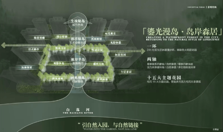 项目整个社区内还打造了“一环+两轴+十五园”的景观,一条林荫步道,串联各个组团的花园景观,尊享森系归家轴与活力共享趣味轴营造高品质社区。