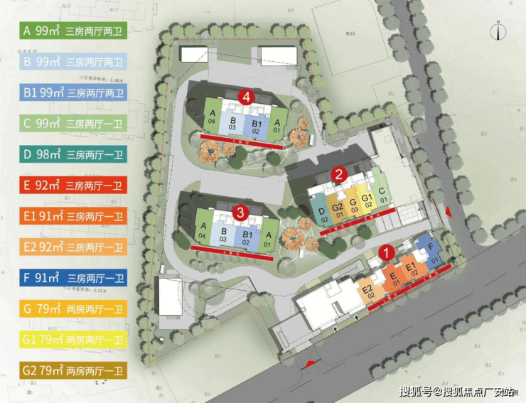 【梯户比】 一幢1梯2户/三/四幢2梯4户 二幢3梯5户