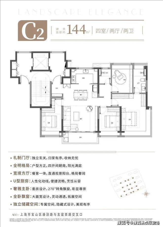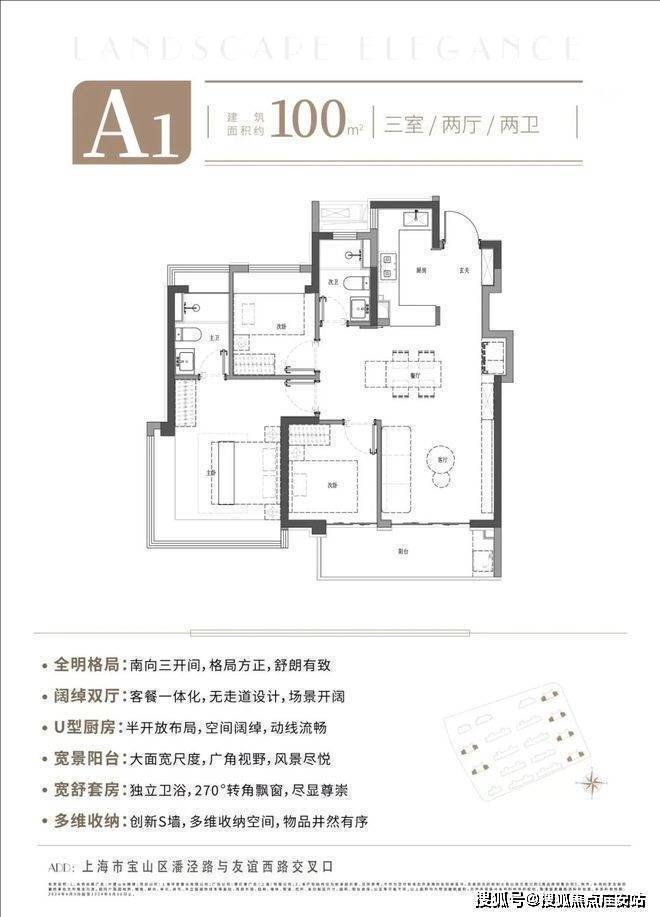 户型设计:全明通透格局,南北通透,大面宽阳台、270°转角飘窗、U型厨房等细节优化空间体验