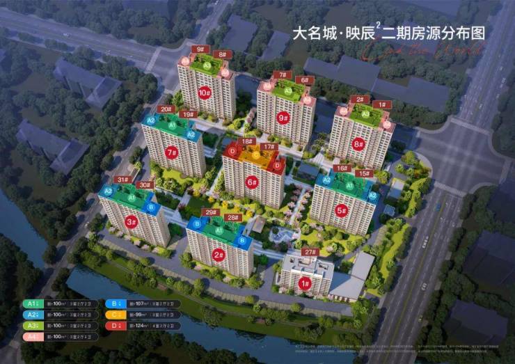 「大名城·映辰」二期在产品的打造上别具匠心。项目由双股上市房企 、2023年房地产上市公司综合实力50强——【大名城】匠心打造,传承“紫金系”精工品质,在深刻洞察时代青年的居住需求后,二期新品在一期的基础上,进行多维度的升级,敬献亲水活力社区。
