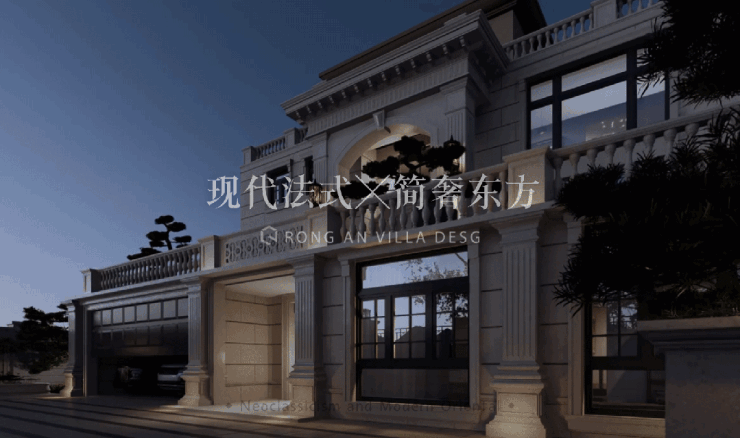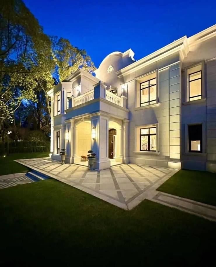 ◆ 采用现代法式风格,以石材塑造庄重立面,拱门、柱式搭配复古壁灯,融合传统建筑元素与现代工艺,展现大气沉稳的大宅气质。又通过简洁线条适配当代审美,奠定精致典雅的整体基调 。适配当代大宅对 “低调奢华” 的追求。