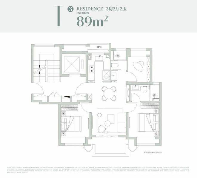 建面约89m²3房2厅2卫