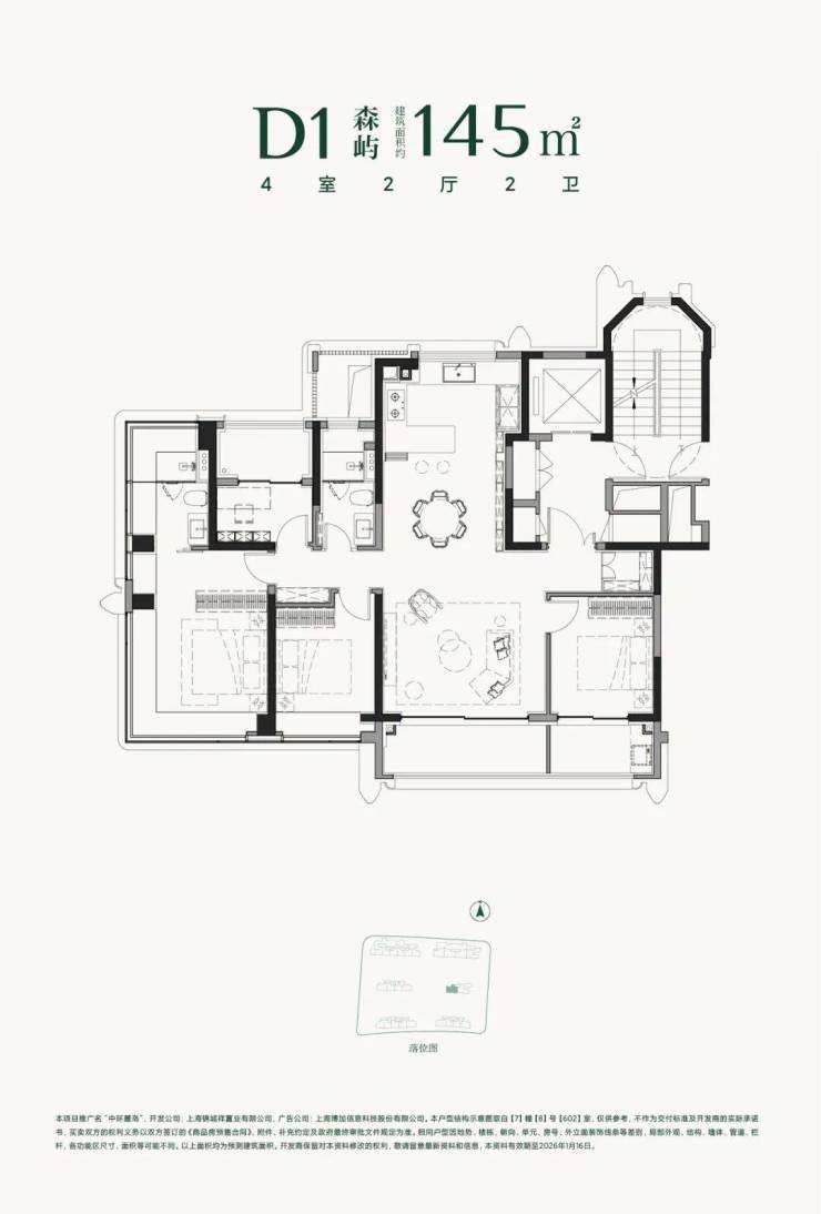 约145㎡户型实得率约97%,多出约15㎡实用面积,相当于多出了一间房;