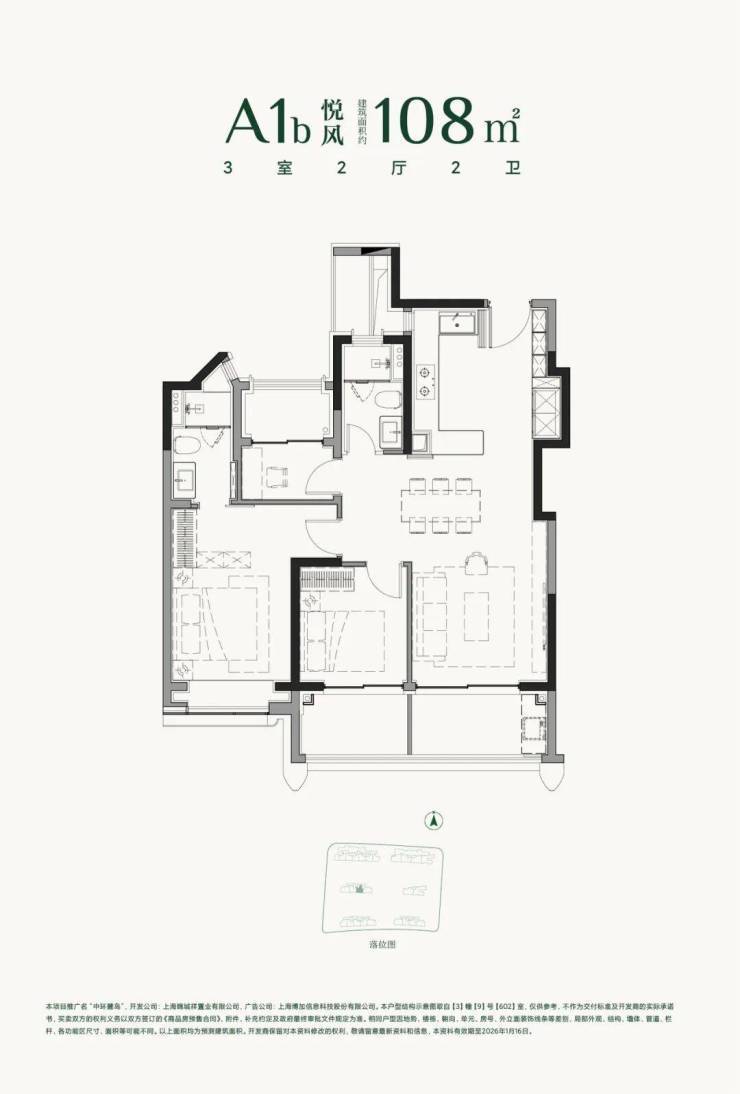 约108㎡户型实得率约91%,以刚改面积实现改善级空间体验;