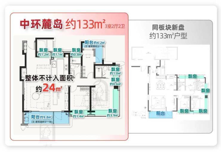 而中环麓岛通过精准的户型优化与空间拓展设计,实现了实得率的全面突破: