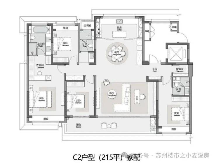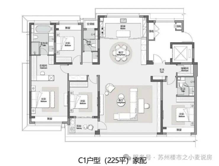 户型面积段:165-225㎡ 全部为四房三卫