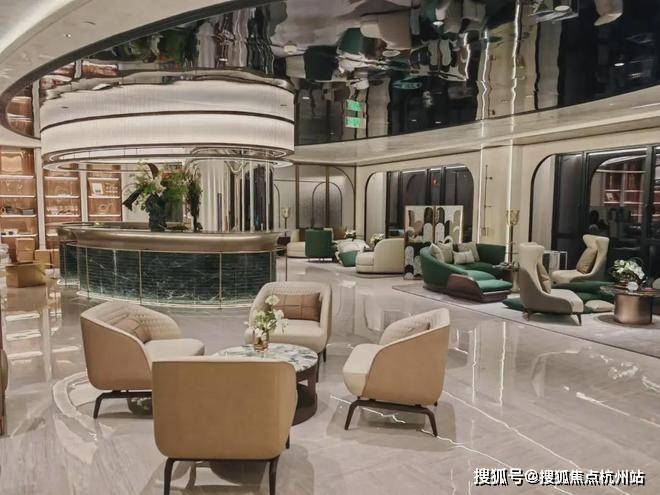 N+奢石铺装,从地面到公区,地下三层入户大堂荟萃普拉达绿石材、温哥华海石材、东方白石材、莫奈灰石材,特殊玻璃等,大手笔低营造调奢华的空间气场。
