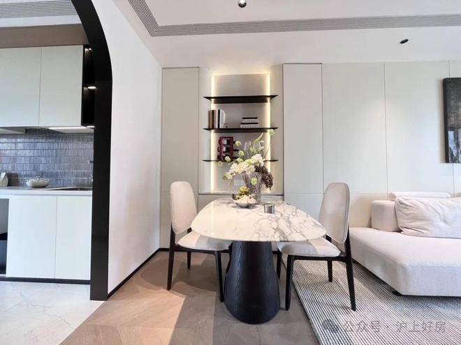 餐厅与多功能房之间采用长虹折叠玻璃门隔断,在艺术与生活之间找到了完美的平衡点。