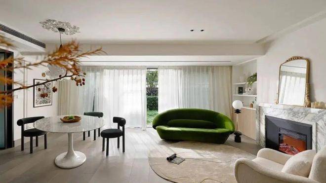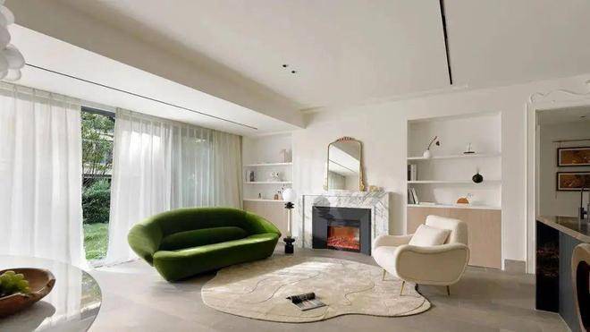 暖白色现代法式客厅,少许经典的法式雕花结合大白墙,打造一个现代法式的空间基调。
