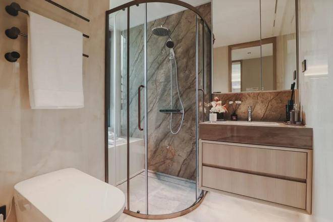 装修配置上,中环铂樾也是全装全配,选用的都是一线品牌。大金空调和地暖两联供、华为的智慧家居系统、方太的7件套、博世的隐藏冰箱、铂浪高的龙头和方太水槽、汉斯格雅的卫生间龙头、杜拉维特的卫生间面盆、智能马桶…
