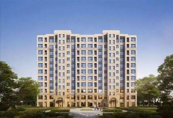 项目在整体建筑立面上采用简约新古典风格,线条简约干净,颜色整体为暖色,深浅搭配,呈现出古典而简约的建筑形象。