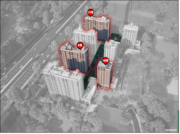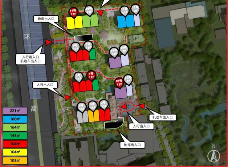 西郊云庐本次首开楼栋为6号、11号、18号楼,其中18号为221㎡大户型,其余均为104-143㎡户型,具体分布位置如下: