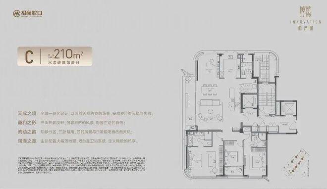 户型配置:主力户型170-380㎡大平层,得房率78%,部分户型配置双主卧、独立衣帽间及家政间。