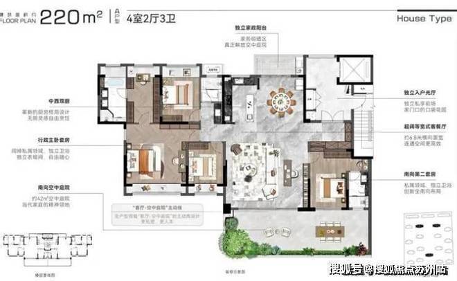 苏州蠡棠森屿售楼处电话☎:400-9016-520(售楼处预约看房热线)南向L型空中庭院巧妙衔接卧室,打造“厅卧同质”空间,赋予主卧更多功能性;同时,前庭后院布局,北向特赠超大公共平台,预留出无限可能的生长空间,为未来生活注入丰富多样性与不断涌现的新奇体验。